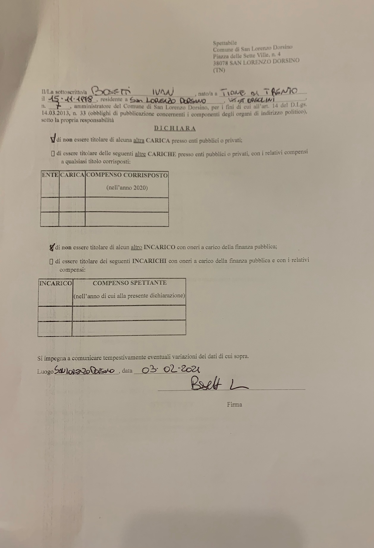 Altre cariche Dichiarazione cariche ed incarichi BI (File pdf 349,70 kB) Dichiarazione anno 2020 Bosetti Ivan (File image/jpeg 438,54 kB) Dichiarazione anno 2021 Bosetti Ivan (File pdf 3,83 MB) Dichiarazione anno 2022 Bosetti Ivan (File pdf 3,80 MB) Dichiarazione anno 2023 Bosetti Ivan (File pdf 384,96 kB)